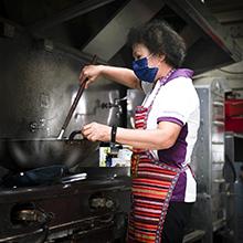 “無肉不歡”的我每次吃素食總是沒有飽足感,但遇到孫素節師姐,竟然第一次有了“吃太飽”的經驗,哇…!悶熱且蒸氣騰騰的廚房中,很難想像那嬌小的身影,卻能撐起百人份的課程餐食,實在令人驚奇!